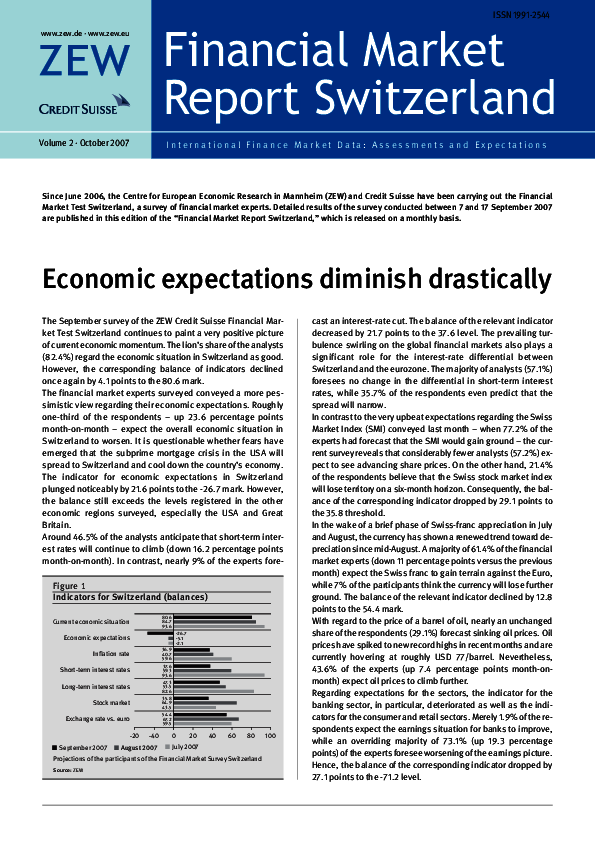 Financial Market Report Switzerland // 2007- Economic Expectations Diminish Drastically