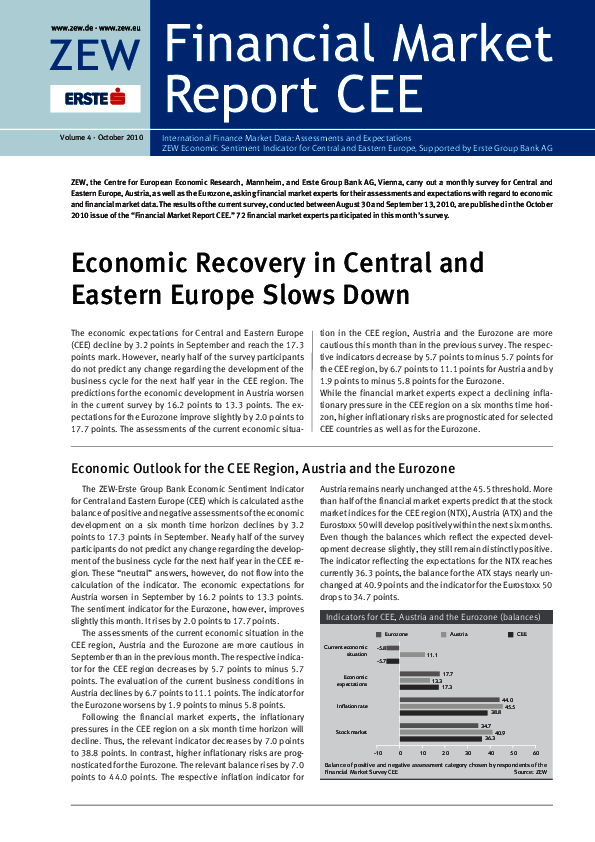 Financial Market Report CEE // 2010- Economic Recovery in Central and Eastern Europe Slows Down