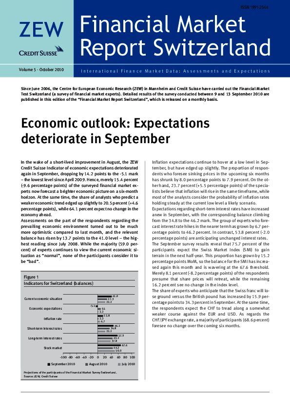 Financial Market Report Switzerland // 2010- Economic Outlook: Expectations Deteriorate in September
