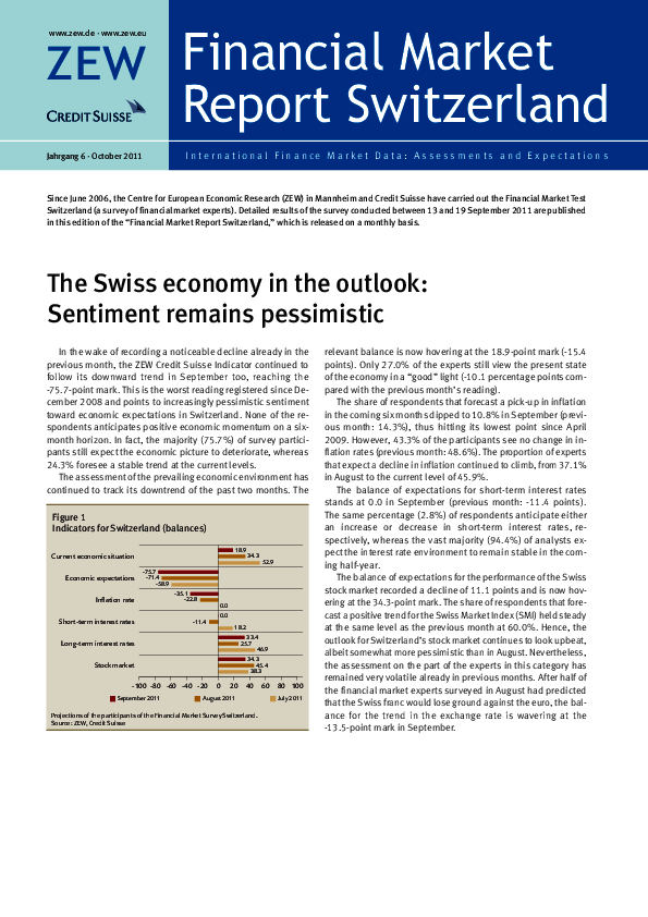 Financial Market Report Switzerland // 2011- The Swiss Economy in the Outlook: Sentiment Remains Pessimistic
