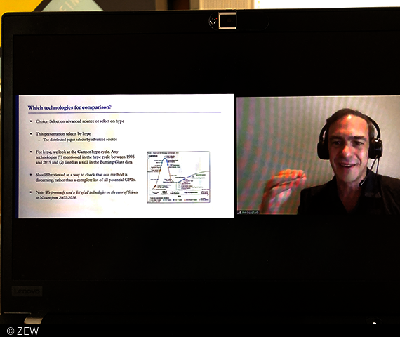 The conference kicked off with a keynote speech by Avi Goldfarb, professor at the University of Toronto in Canada. He discussed the question of whether machine learning as a method of artificial intelligence is a general-purpose technology. His presentation focused on a new approach to classifying a technology as a general-purpose technology even before its widespread use. Typically, general-purpose technologies are only identified retrospectively. This way, however, informed decisions on technology adoption are hardly possible. Using online job ads, Goldfarb and his co-authors therefore compared several emerging technologies in terms of breadth of industries with job postings and the importance and breadth of research roles. Goldfarb’s findings suggest that machine learning and related data analysis technologies can most likely be considered general-purpose technologies.
