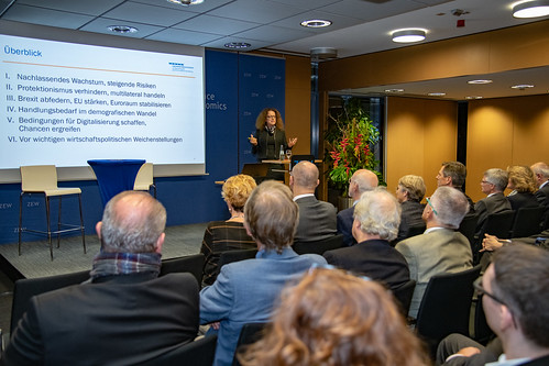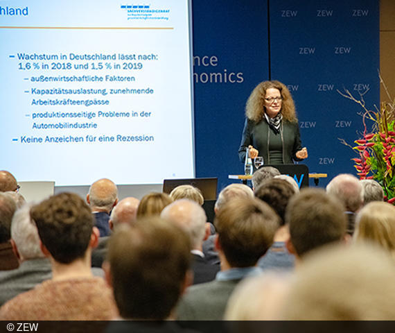 On 21 November 2018, the financial market expert from the University of Bonn presented the recently published annual report of the German Council of Economic Experts at the Centre for European Economic Research (ZEW), Mannheim, within the framework of the lecture series “First-Hand Information on Economic Policy” in front of around 140 guests. In her speech, she emphasised that both Germany and Europe are on the verge of a major turning point in the face of slowing economic growth, a worldwide slowdown in the pace of expansion as well as increasing international risks.