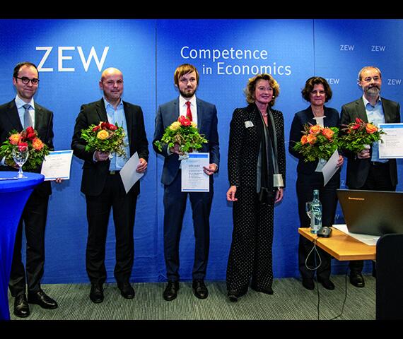 As a team of authors, the ZEW researchers Professor Irene Bertschek, Dr. Jörg Ohnemus, Dr. Thomas Niebel and Dr. Christian Rammer share the award for the best economic policy advising project at ZEW in 2017/2018. The prize-winning study “Monitoring Report DIGITAL Economy 2017” has been published annually since 2012 on behalf of the German Federal Ministry for Economic Affairs and Energy and provides important insights into the current state of digitalisation in Germany in comparison to other countries.