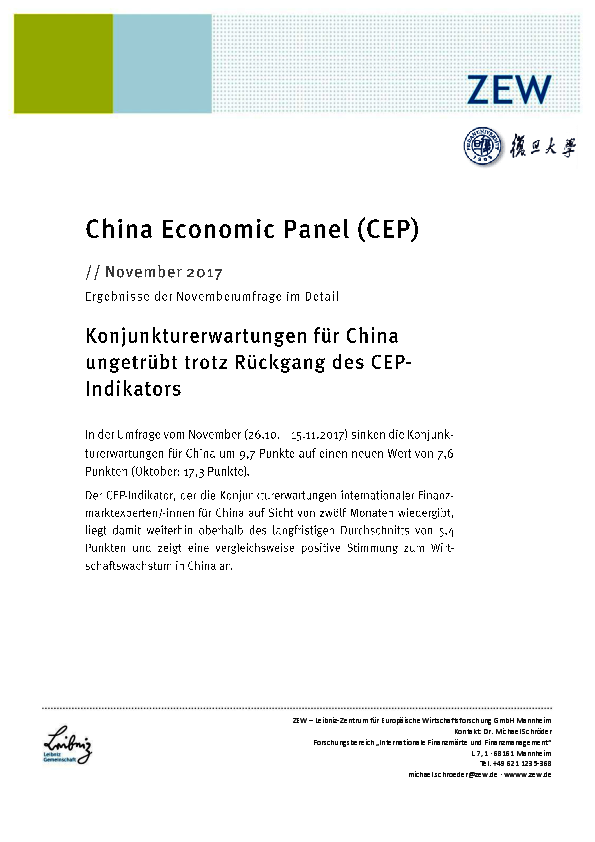 - An der November-Umfrage des China Economic Panel vom 26.10.-15.11.2017 beteiligten sich 33 Analysten