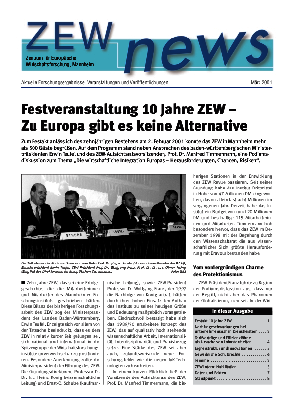 - ZEW-Finanzmarkttest: Ergebnisse der Umfrage im März 2001