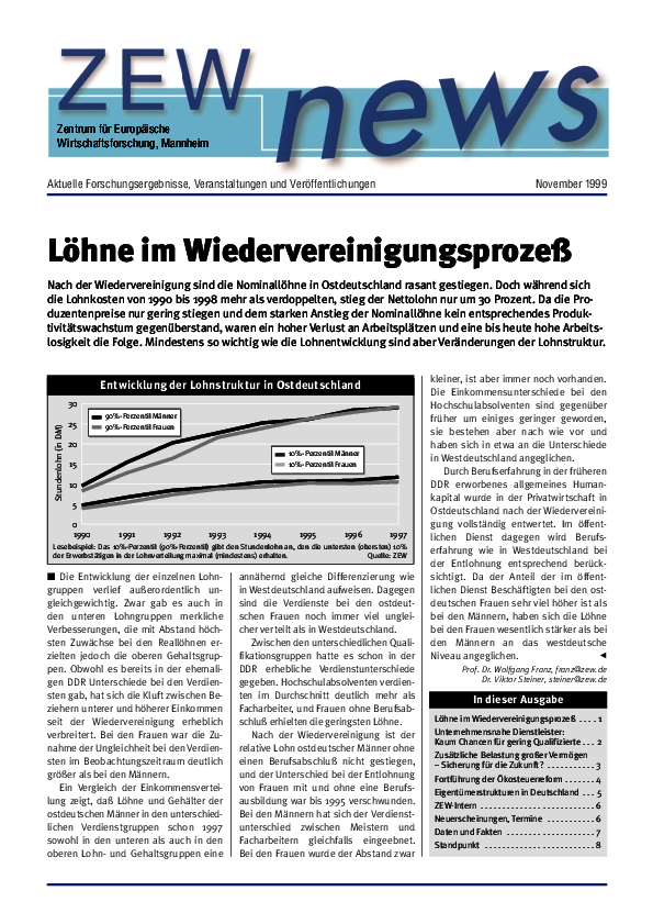 Im Rahmen eines interdisziplinären Projektverbunds des Zentrums für Europäische Wirtschaftsforschung in Mannheim und der Universität Mannheim wurden im Zeitraum von Mitte April bis Mitte Mai 1998 in Form von…