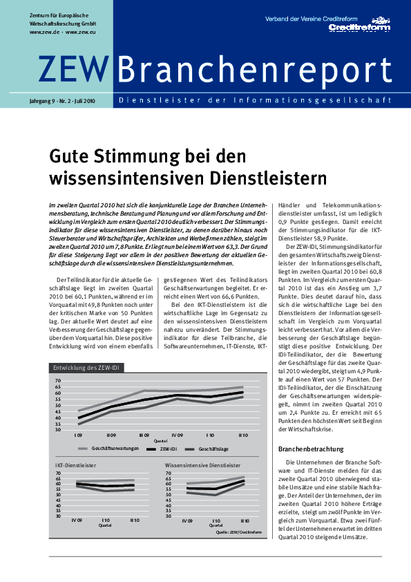 Im zweiten Quartal 2010 hat sich die konjunkturelle Lage der Branchen Unternehmensberatung, technische Beratung und Planung und vor allem Forschung und…