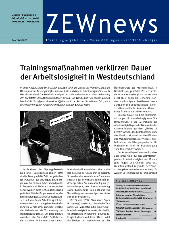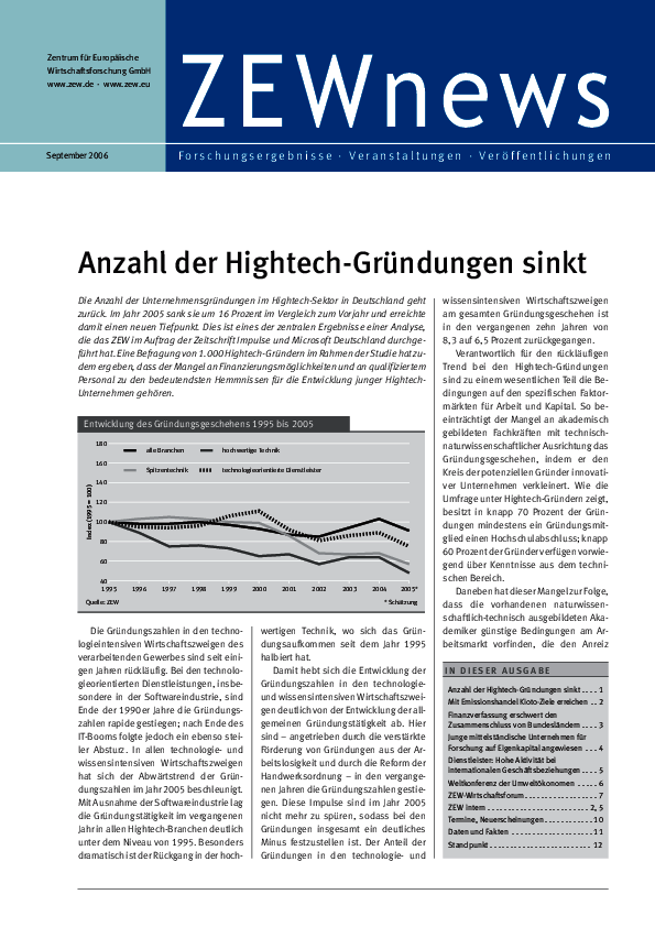 Der ZEW-IDI, Stimmungsindikator für den Wirtschaftszweig Dienstleister der Informationsgesellschaft, ist im dritten Quartal 2006 leicht um 5,5 Punkte gesunken und liegt nun…