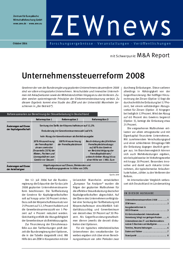 Der Forschungsbereich „Unternehmensbesteuerung und Öffentliche Finanzwirtschaft“ befasst sich mit Fragen der betriebswirtschaftlichen Steuerlehre und der empirischen Finanzwissenschaft im Kontext der europäischen Integration.