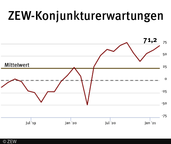 ZEW-KonjunkturerwartungenDer ZEW-Indikator liegt bei 71,2 Punkten