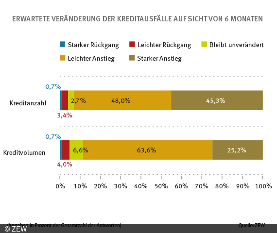 Überdurchschnittlich betroffen seien von diesen Ausfällen besonders die Sparkassen und Volks- und Raiffeisenbanken: 58 Prozent bzw. 56 Prozent der Experten/-innen teilen diese Erwartung. Dagegen erwarten nur 32 Prozent der Befragten bei den Großbanken überdurchschnittliche Ausfälle und bei den Privatbankiers sind es lediglich neun Prozent. „Angesichts der zunehmenden Warnungen bezüglich einer möglichen anstehenden Bankenkrise betonen die Banken selbst, dass sie in den Jahren seit der Finanzkrise ihre Eigenkapitalausstattung deutlich verbessert und ausreichend Vorsorge getroffen hätten. Auch die Bankenaufseher sehen das deutsche Finanzsystem als Ganzes als robust an, auch wenn einige der schwächsten Banken die Krise vermutlich nicht überstehen würden“, sagt Dr. Karolin Kirschenmann, stellvertretende Leiterin des ZEW-Forschungsbereichs „Internationale Finanzmärkte und Finanzmanagement“.