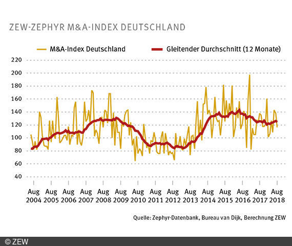 Der ZEW-ZEPHYR M&A-Index Deutschland berechnet sich aus der Anzahl der in Deutschland monatlich abgeschlossenen M&A-Transaktionen. In diesem Index werden ausschließlich Fusionen und Übernahmen von und mit deutschen Unternehmen berücksichtigt. Eine Differenzierung nach dem Ursprungsland des Käufers oder Partners findet nicht statt. Das bedeutet, dass sowohl inländische als auch ausländische Käuferunternehmen berücksichtigt werden, während die Zielunternehmen in Deutschland tätig sind. Der ZEW-ZEPHYR M&A-Index Deutschland wird vom ZEW und von Bureau van Dijk auf Basis der Zephyr-Datenbank erstellt. Zephyr liefert tagesaktuelle Detailinformationen zu 1,6 Millionen M&A, IPO und Private-Equity-Transaktionen sowie Gerüchten weltweit.