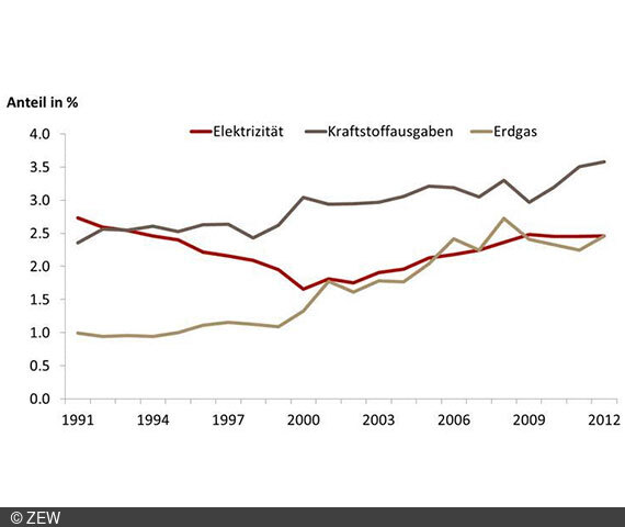 Obwohl die gesetzlichen Umlagen für die nicht-begünstigten Endverbraucher deutlich gestiegen sind, erhöhten sich die gesamtwirtschaftlich aggregierten Letztverbraucherausgaben für Elektrizität im Jahr 2012 nicht stärker als das nominale Bruttoinlandsprodukt und blieben auf einen nahezu unveränderten Anteil von 2,5 Prozent begrenzt. Die Expertenkommission gelangt daher zur Einschätzung, dass die bisherige Kostenbelastung durch die Energiewende für die deutsche Volkswirtschaft insgesamt noch nicht so dramatisch ist, wie in der Öffentlichkeit oft dargestellt. Die im Jahr 2012 stark gestiegenen Gesamtausgaben für Erdgas und für Kraftstoffe sind vor allem auf die internationale Preisentwicklung zurückzuführen und nicht der Energiewende zuzurechnen.