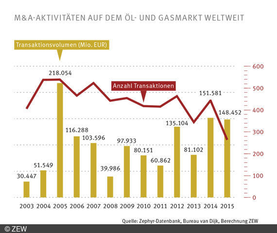 Belief sich die Anzahl an Transaktionen im Jahr 2014 noch auf 444, halbierte sie sich im vergangenen Jahr fast auf nur noch 264 Deals. "Grund dafür ist eine neue, abwartende Haltung in der Branche", erklärt Niklas Dürr, wissenschaftlicher Mitarbeiter in der ZEW-Forschungsgruppe "Wettbewerb und Regulierung". Nach mehr als einem Jahr niedriger Preise bei Öl und Gas folgt nun eine Phase der Unsicherheit und Neuausrichtung der Branche. "Da keine großen Preiserhöhungen in den nächsten Jahren erwartet werden, halten die Konzerne ihr Kapital lieber zusammen, als riskante Abenteuer zu wagen", sagt Niklas Dürr.