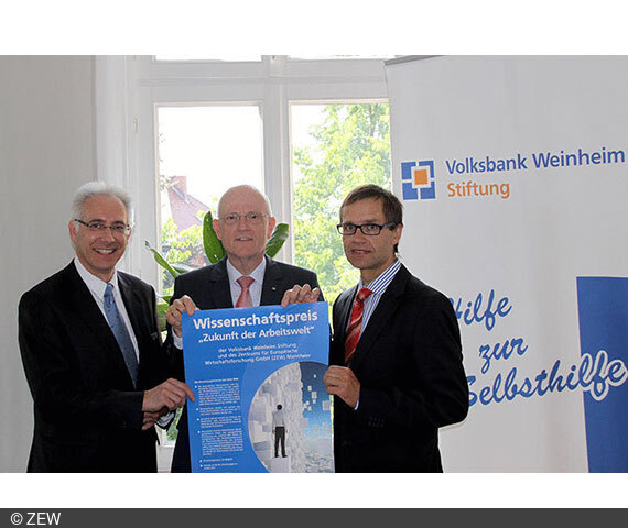 Die Wertung erfolgt durch ein Auswahlkomitee, dem Wolf-Dietrich Möller und Manfred Soßong von der Volksbank Weinheim Stiftung, Prof. Dr. Rolf-Jürgen Ahlers sowie von Seiten des ZEW Prof. Dr. Clemens Fuest (Präsident), Thomas Kohl (Kaufmännischer Direktor), Prof. Dr. Irene Bertschek (Leiterin der Forschungsgruppe Informationsund Kommunikationstechnologien) und Prof. Dr. Holger Bonin (Leiter des Forschungsbereichs Arbeitsmärkte, Personalmanagement und Soziale Sicherung) angehören.
