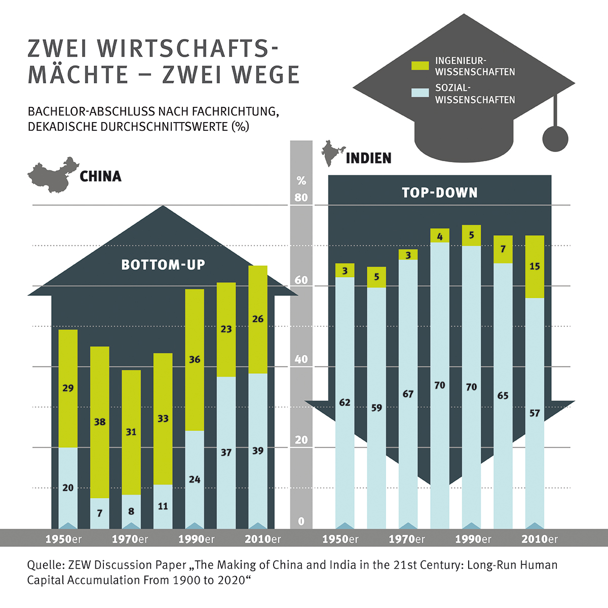 ForschungZEW-Studie untersucht wirtschaftliche Auswirkungen der Bildungssysteme in Indien und China