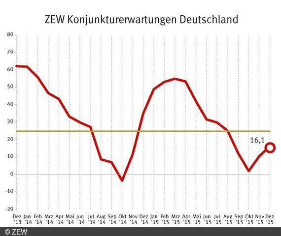 Der ZEW-CS-Indikator für die Schweiz ist im Dezember 2015 von exakt null Punkten auf 16,6 Punkte gestiegen. Damit haben die Konjunkturerwartungen fast wieder das Niveau von Oktober 2015 (18,3 Punkte) erreicht.…