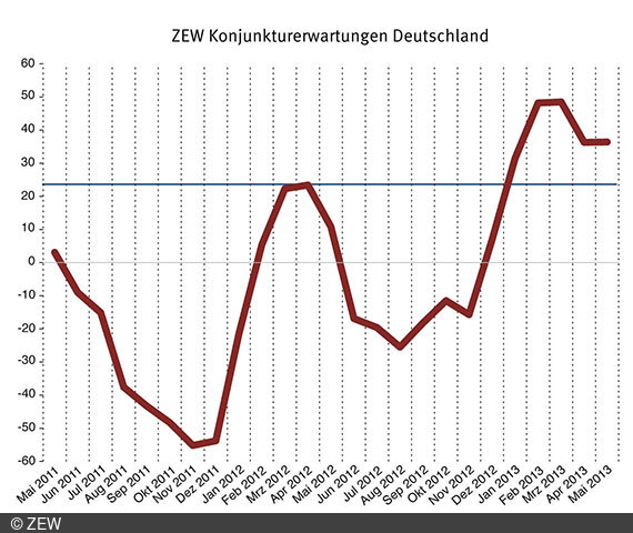 Der ZEW-CS-Indikator der Konjunkturerwartungen für die Schweiz fällt im Mai 2013 um 17,8 Punkte auf jetzt 2,2 Punkte. Damit geht der beachtliche Zugewinn aus dem Vormonat verloren und der Indikator befindet…