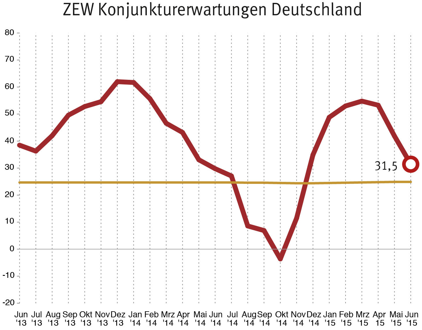 Beim ZEW-CS-Indikator wechselt im Juni 2015 das Vorzeichen von rot auf schwarz. Er steigt geringfügig um 0,2 Punkte und beträgt nun 0,1 Punkte. Damit liegt er wie im Vormonat auf einem Niveau, das weder eine…