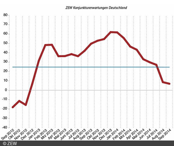 Die Konjunkturerwartungen für die Schweiz verlieren im September 2014 10,2 Punkte. Damit fällt der ZEW-CS Indikator auf einen Stand von minus 7,7 Punkten. Er bewegt sich somit erstmals seit Januar 2013 wieder…