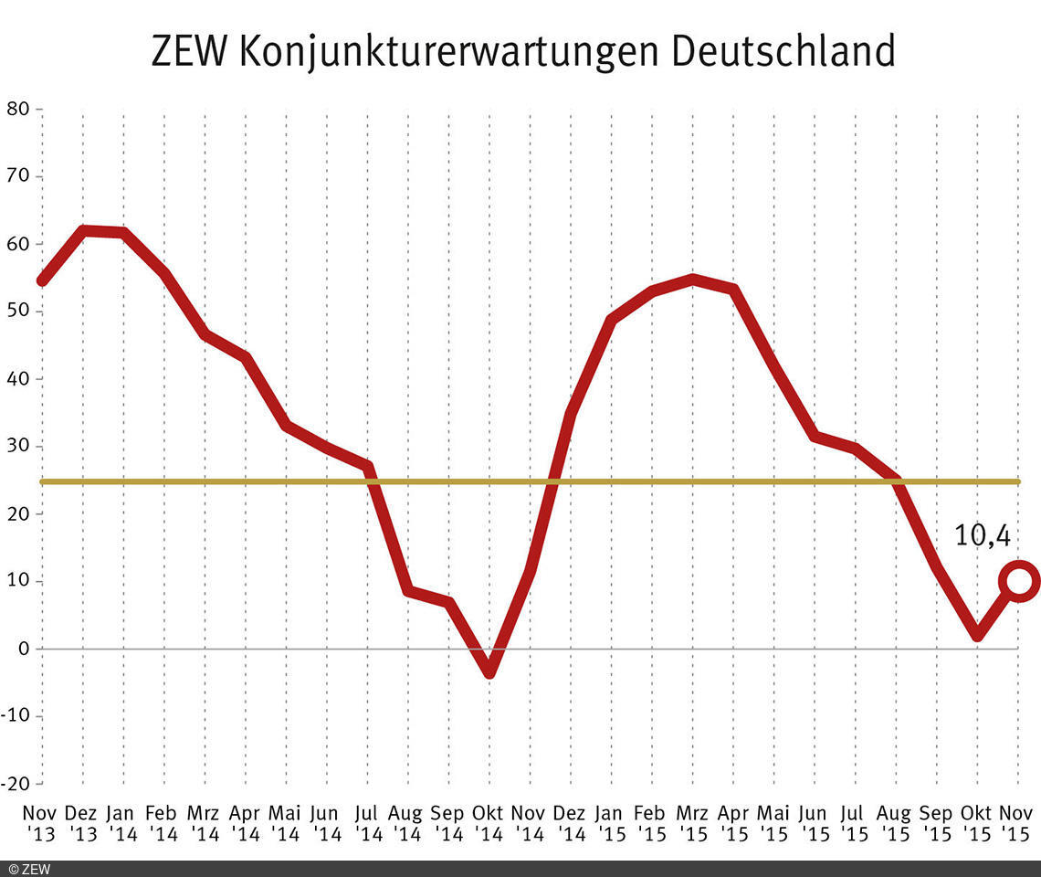 Der ZEW-CS-Indikator für die Schweiz bricht im November 2015 ein. Er fällt um 18,3 Punkte und steht jetzt bei exakt null Punkten. Für die kommenden sechs Monate wird also weder eine Verbesserung noch eine…