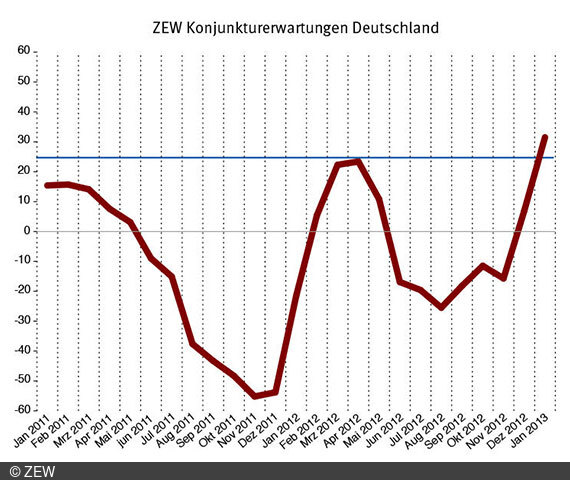 Die Konjunkturerwartungen für die Schweiz verbessern sich im Januar 2013 um 8,6 Punkte. Der ZEW-CS Indikator erreicht damit einen Stand von minus 6,9 Punkten. Der ZEW-CS Indikator spiegelt die Einschätzung der…