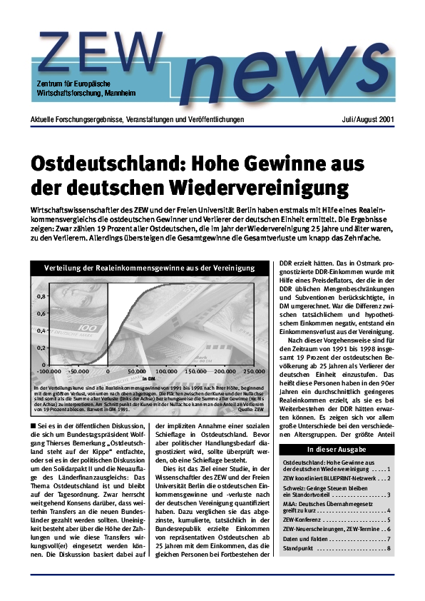 ZEWnews // 2001- Ostdeutschland: Hohe Gewinne aus der deutschen Wiedervereinigung