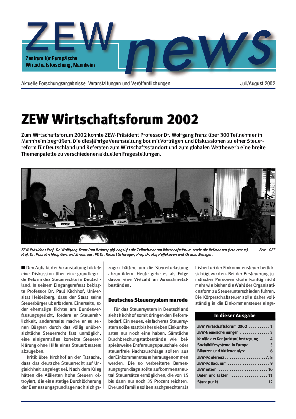 Schlagworte ZEW Wirtschaftsforum // Konjunkturzusammenhang // Sozialhilfe // Aktienmarkt // EU-Kommission