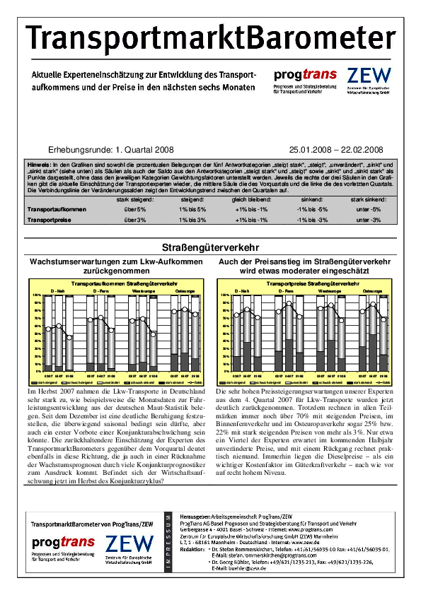 ZEW/Prognos-Transportmarktbarometer // 2008Beruhigung beim Preisauftrieb in der Transportwirtschaft erwartet