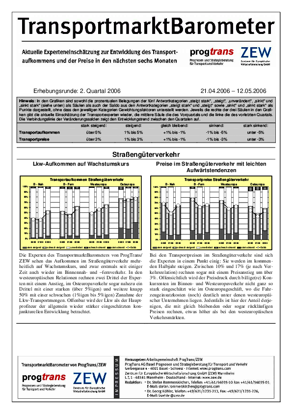 ZEW/Prognos-Transportmarktbarometer // 2006Leichte Preissteigerungen bei steigendem Transportaufkommen