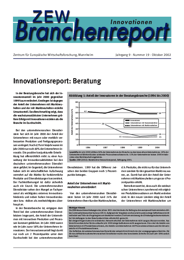 Branchenreport Innovationen // 2001Jahrg. 9, Nr. 19, Oktober 2002