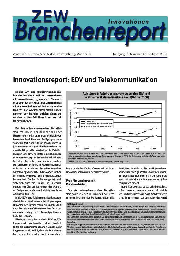 Branchenreport Innovationen // 2001Jahrg. 9, Nr. 17, Oktober 2002