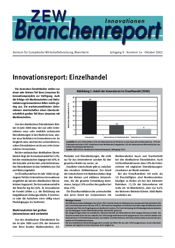Branchenreport Innovationen // 2001Jahrg. 9, Nr. 14, Oktober 2002