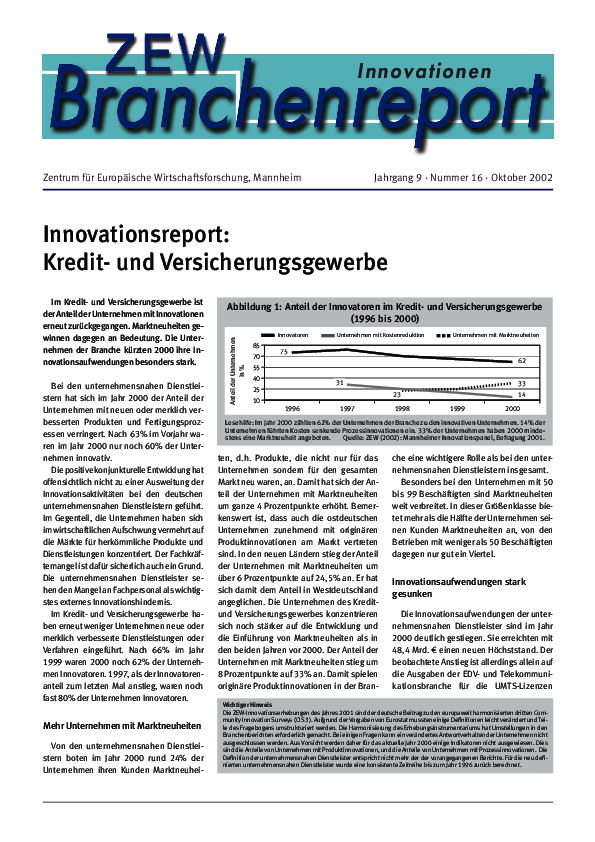 Branchenreport Innovationen // 2001Jahrg. 9, Nr. 16, Oktober 2002