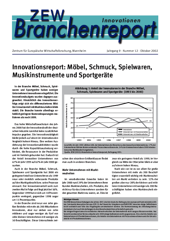 Branchenreport Innovationen // 2001Jahrg. 9, Nr. 12, Oktober 2002