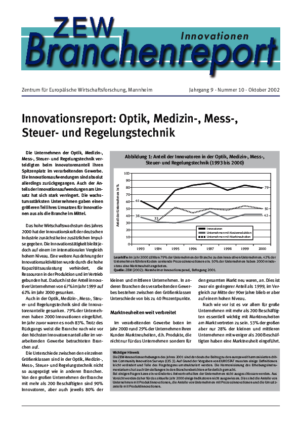 Branchenreport Innovationen // 2001Jahrg. 9, Nr. 10, Oktober 2002