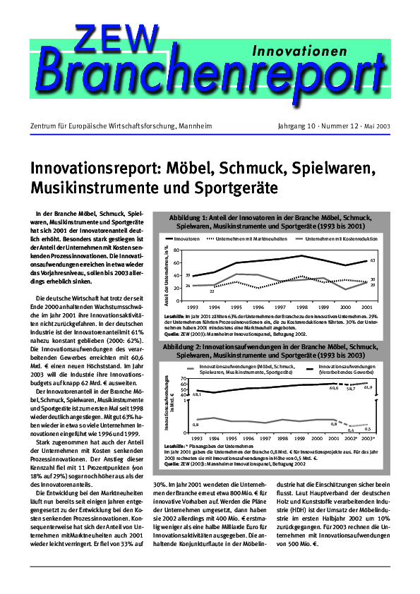 Branchenreport Innovationen // 2002Jahrg. 10, Nr. 12, Mai 2003