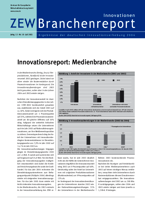 Branchenreport Innovationen // 2004Jahrg. 12, Nr. 17, Juli 2005