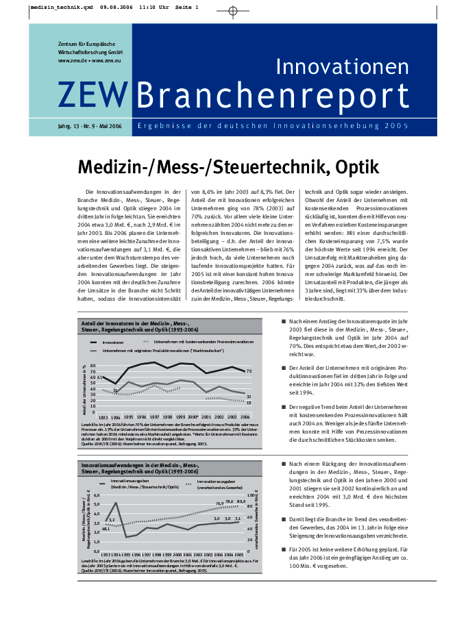 Branchenreport Innovationen // 2005Jahrg. 13, Nr. 9, Mai 2006