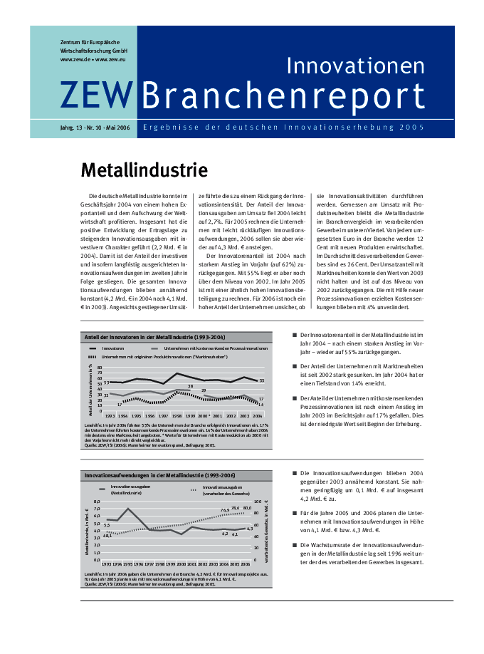 Branchenreport Innovationen // 2005Jahrg. 13, Nr. 10, Mai 2006