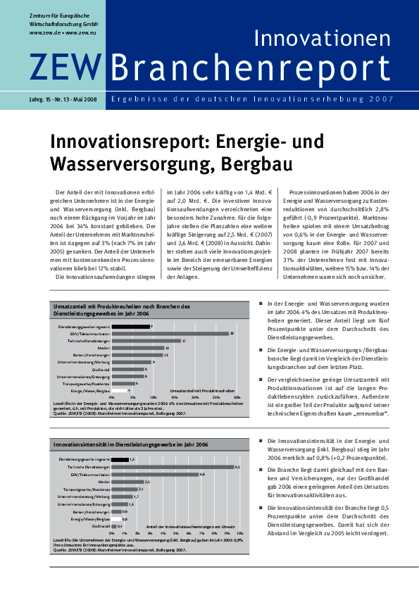Branchenreport Innovationen // 2007Jahrg. 15, Nr. 13, Mai 2008