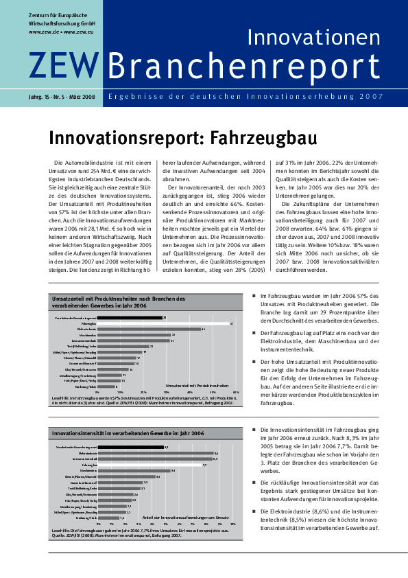 Branchenreport Innovationen // 2007Jahrg. 15, Nr. 5, März 2008