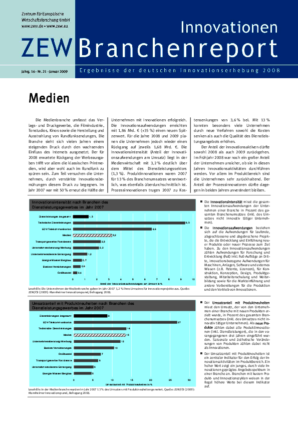 Branchenreport Innovationen // 2008Jahrg. 16, Nr. 21, Januar 2009