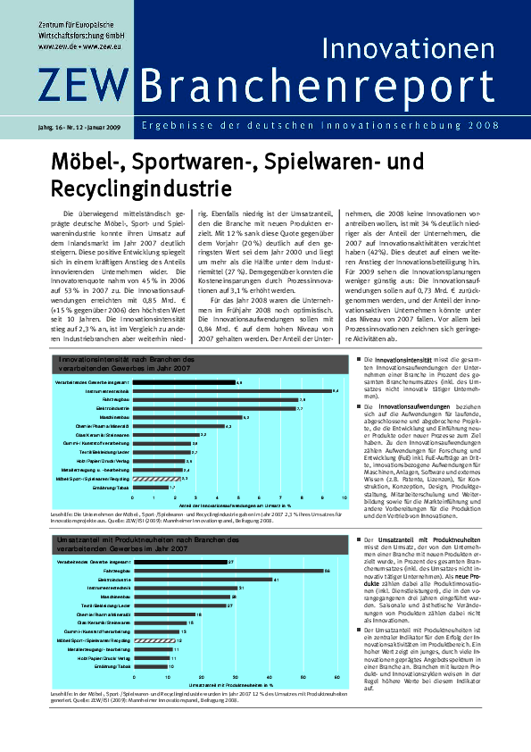 Branchenreport Innovationen // 2008Jahrg. 16, Nr. 12, Januar 2009