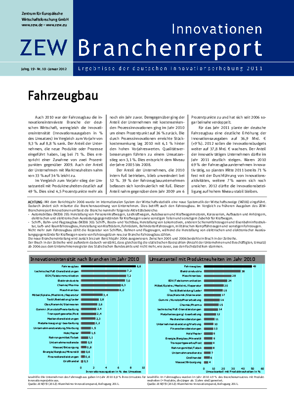 Branchenreport Innovationen // 2011Jahrg. 19, Nr. 10, Januar 2012