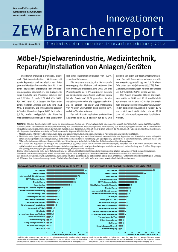 2012 - Möbel-/Spielwarenindustrie, Medizintechnik, Reparatur/Installation von Anlagen/Geräten