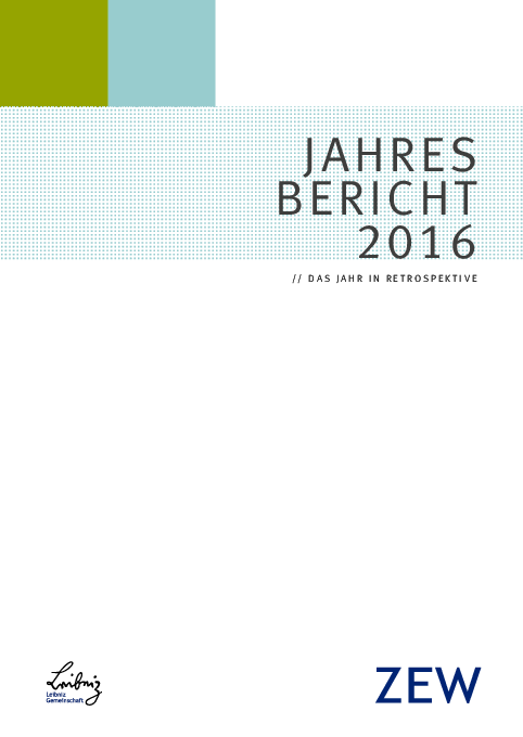 ZEW-Jahresbericht // 2017Das Zentrum für Europäische Wirtschaftsforschung (ZEW), Mannheim, hat seine Wettbewerbsfähigkeit im Geschäftsjahr 2016 eindrucksvoll bewiesen. Angesichts eines zunehmend härter umkämpften nationalen und internationalen Forschungsmarkts bewegte sich der Drittmittelanteil im Jahr 2016 mit 44 Prozent (Vorjahr: 46 Prozent) weiter auf einem konstant hohen Niveau. 19 Prozent der eingeworbenen Drittmittel stammten dabei aus Aufträgen der Europäischen Union. Der gelungene Stabwechsel bei der wissenschaftlichen Leitung des ZEW sowie die herausragende Evaluierung durch die Leibniz-Gemeinschaft im Jahr des 25-jährigen Bestehens des Instituts haben zudem dazu beigetragen, dass das ZEW seine Position als eines der führenden Wirtschaftsforschungsinstitute in Europa untermauert hat. Die Gründung der neuen Forschungsgruppe "Marktdesign" stellt ein weiteres Alleinstellungsmerkmal dar, das den traditionell innovativen Charakter des Instituts belegt.