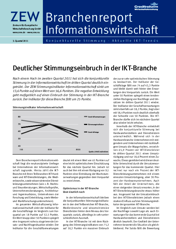 ZEW-Branchenreport Informationswirtschaft // 2011- Deutlicher Stimmungseinbruch in der IKT-Branche