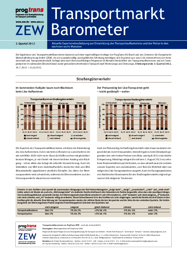 ZEW/Prognos-Transportmarktbarometer // 2012Trotz geringeren Frachtaufkommens leichter Anstieg der Transportpreise erwartet
