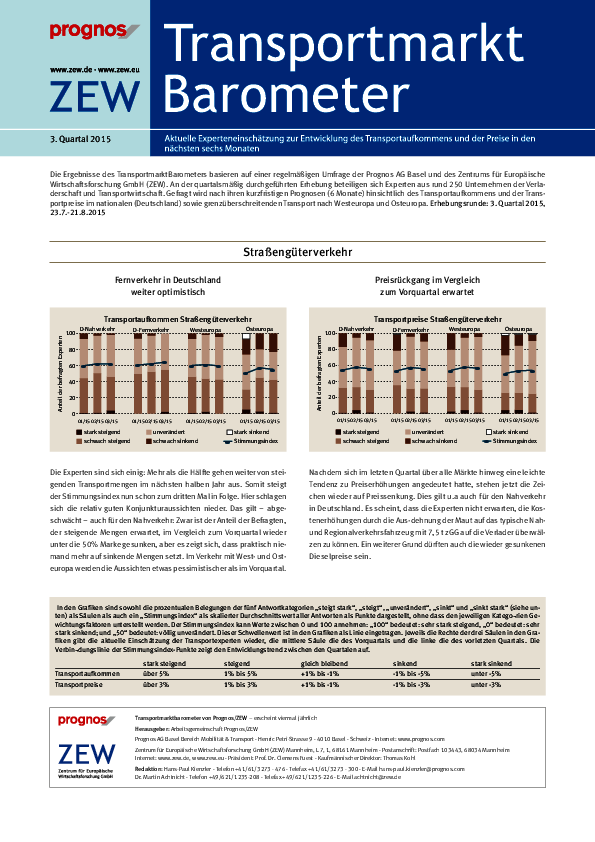 ZEW/Prognos-Transportmarktbarometer // 2015Vor allem der Straßengüterverkehr kann mit steigenden Transportmengen rechnen
